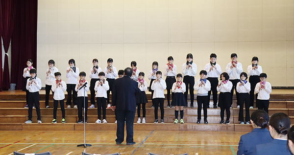 ボイスアンサブル、リコーダー二部合奏、二部合唱を披露