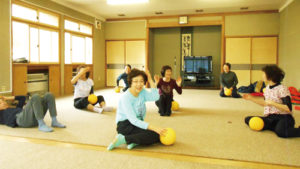 ボール・ベル・ベルダ―という3種類の用具を使い、楽しみながら健康づくりをしています。
