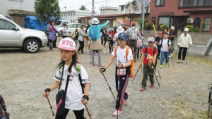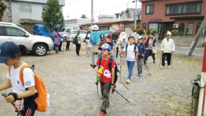 ノルディック・ウォークは、2本のポールを使いながら、健康な体づくりができるウォーキングです。今年度第1回目は、6月15日に行いました。相野児童館・三内児童館・安田児童館の三館交流を兼ね、児童・引率者を含めた42名と一般の参加者19名を合わせ、総勢61名の参加者で実施しました。