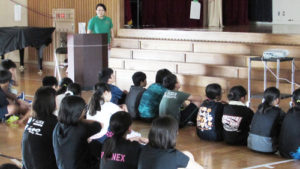 東中学校元PTA会長 防災士 大坂美穂さんを招き、避難所運営の講和を参考に、子ども達も避難所運営に熱心に取り組んでいました。