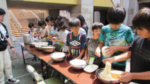 保護者(PTA)・町内会・当会を含む地域の関係団体からも35名程が参加をし、食事作り等を全面的にサポートしました。